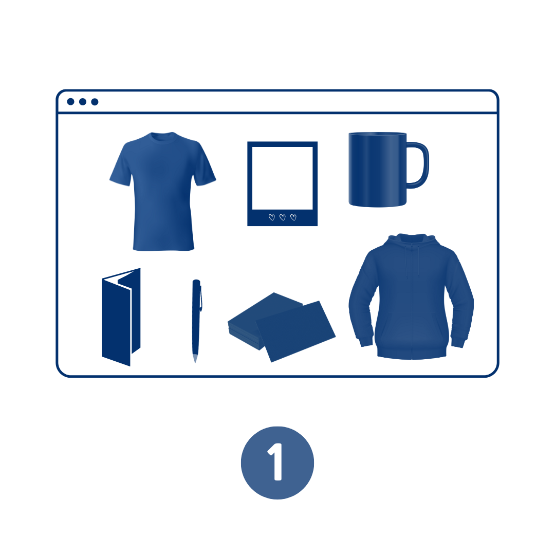 Selecione em nosso site, o tipo de produto e tipo de estampa que deseja personalizar! Você encontra as opções no catálogo!