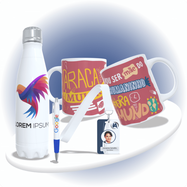 Personalize garrafas, copos, taças, chaveiros, canetas e lindas canecas.