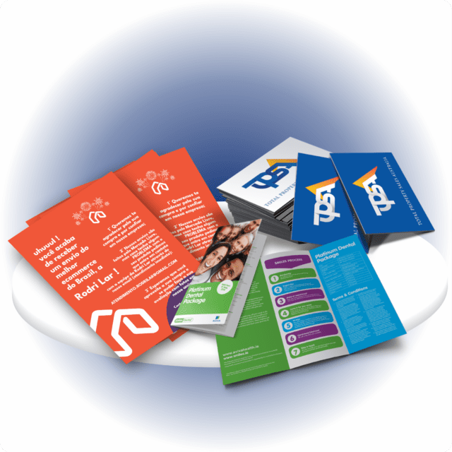 Destaque sua marca com cartões, adesivos, banners e materiais gráficos únicos.